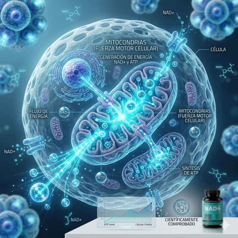 🔋 Cuando el NAD+ disminuye, la energía celular también Las mitocondrias, las fábricas de energía de tus células