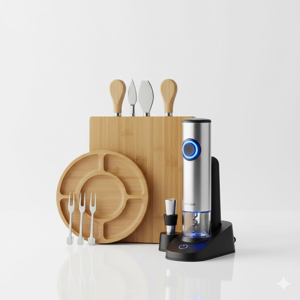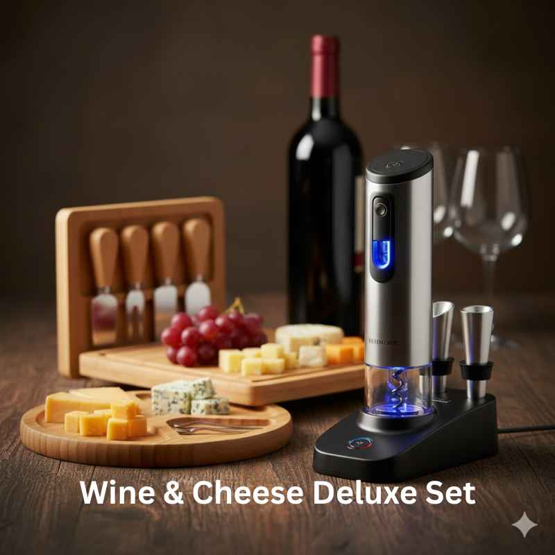 Wine & Cheese Deluxe Set – Sacacorchos Eléctrico + Tabla de Quesos